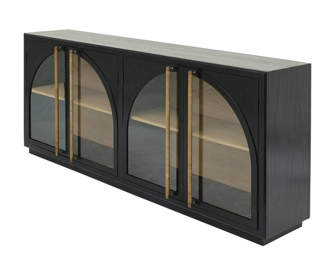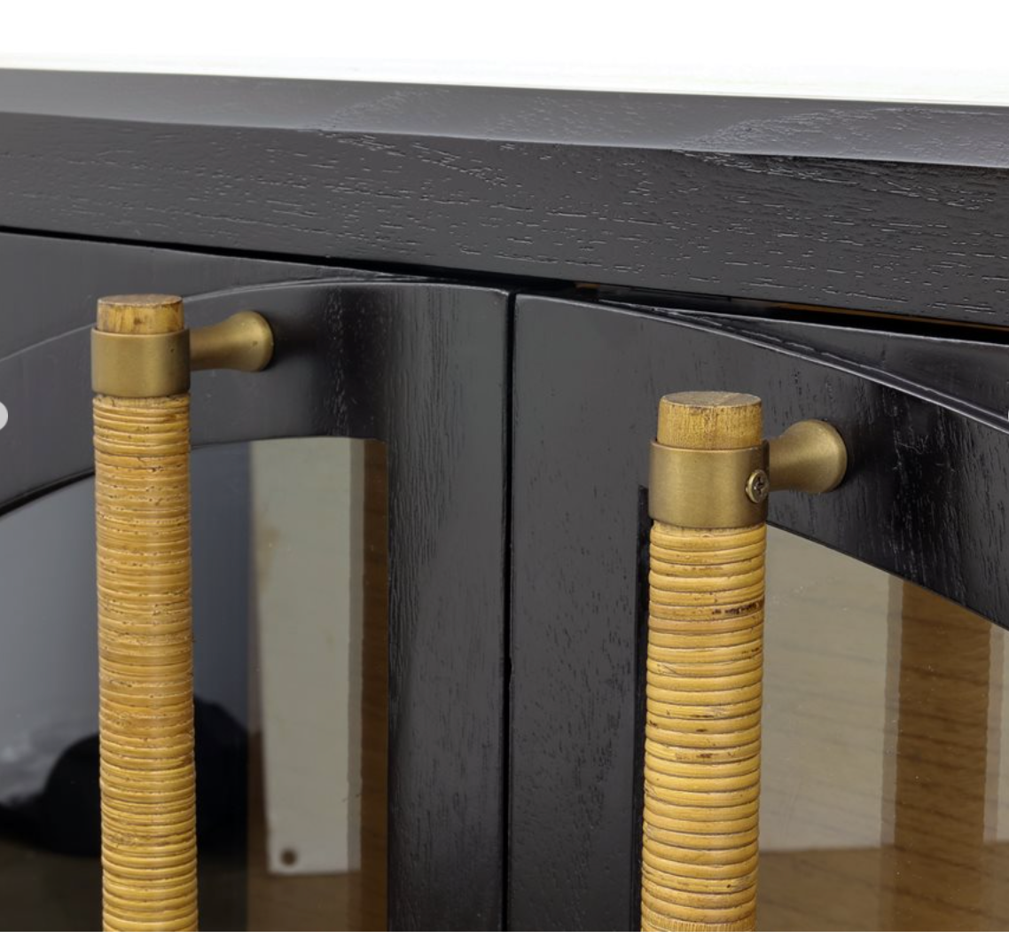 Black wood cabinet | Tempered glass doors | Strawgrass handles