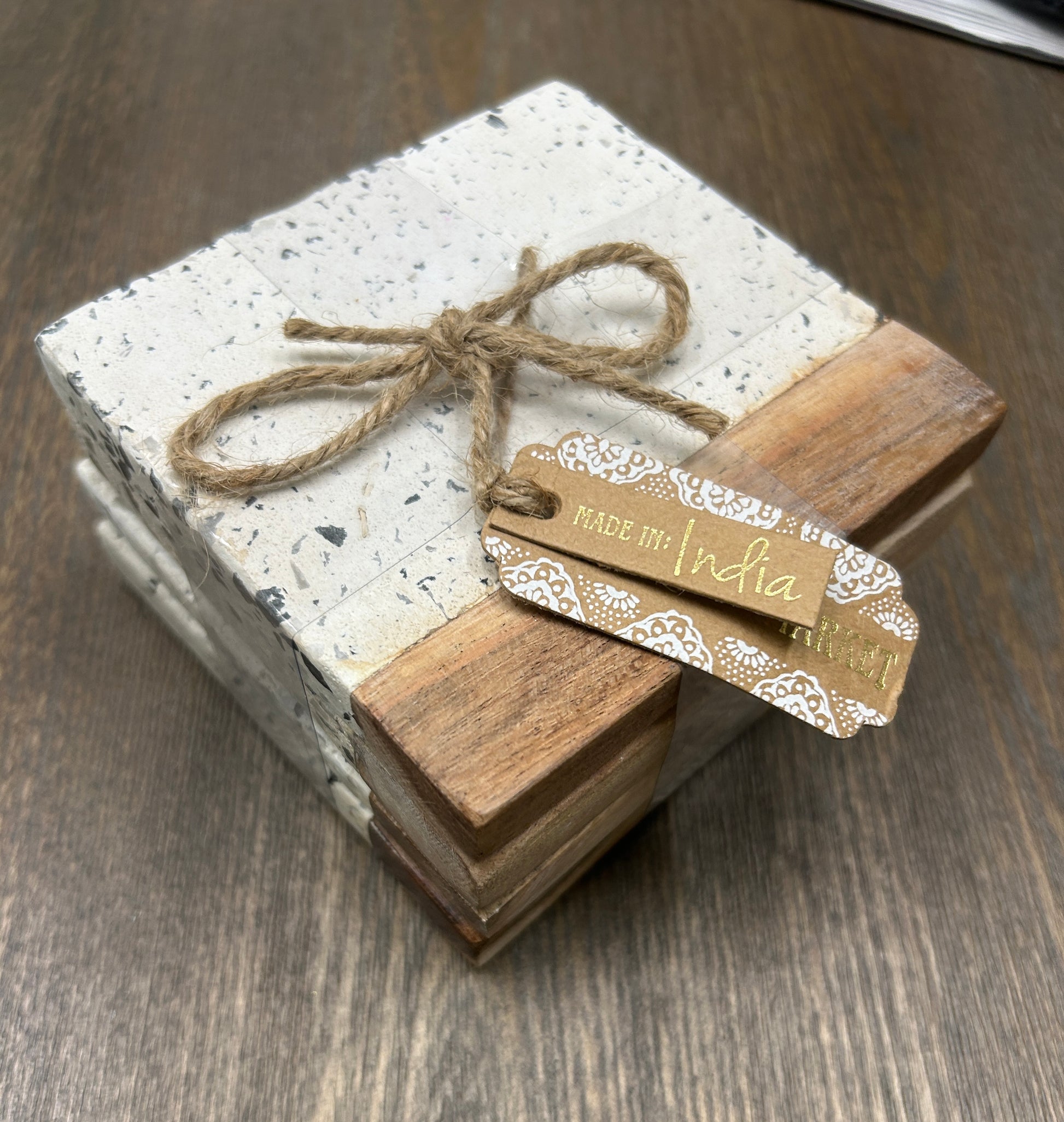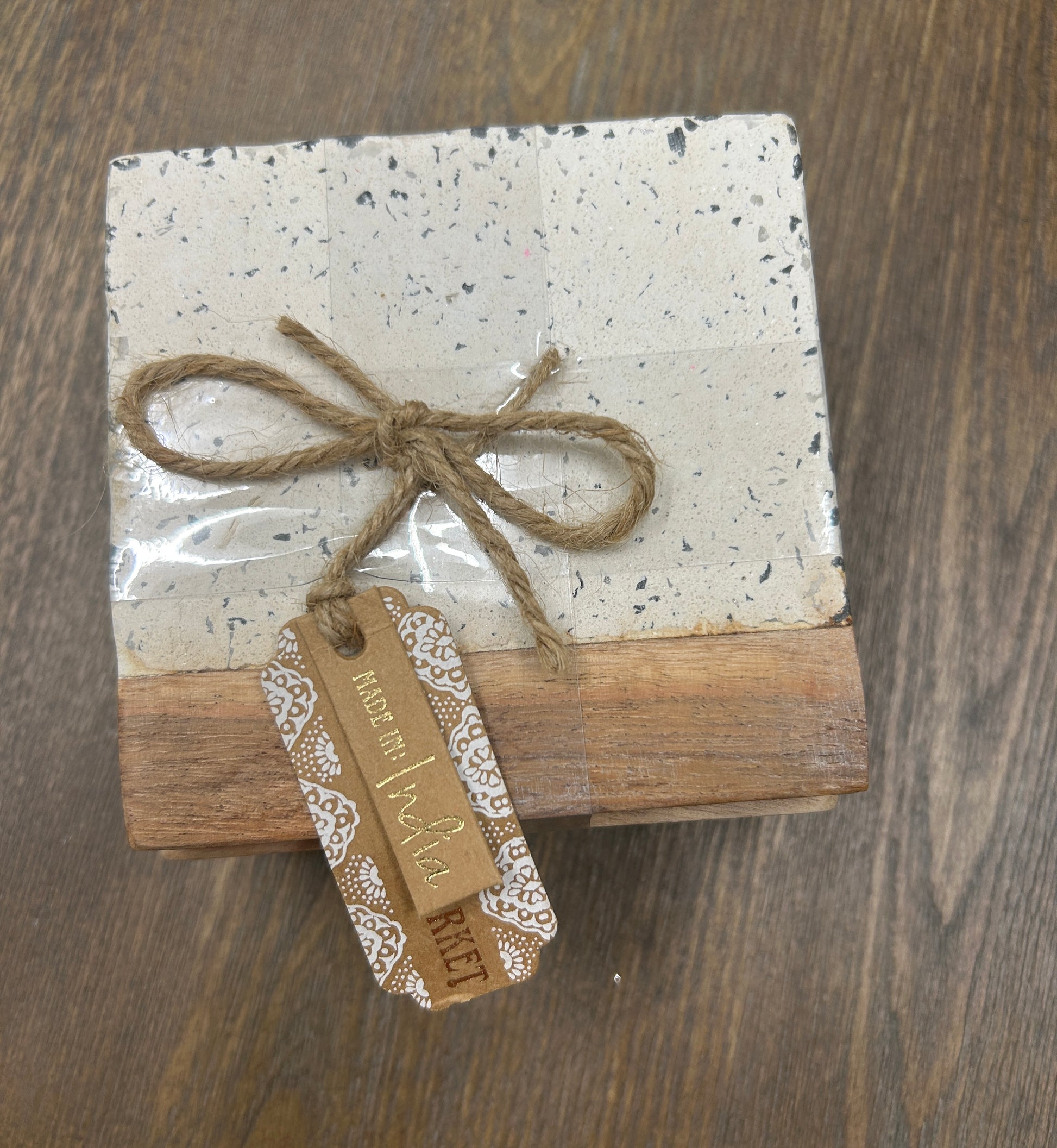 Set of Four Hand Made Coasters. Concrete & Wood. Approx. 4x4