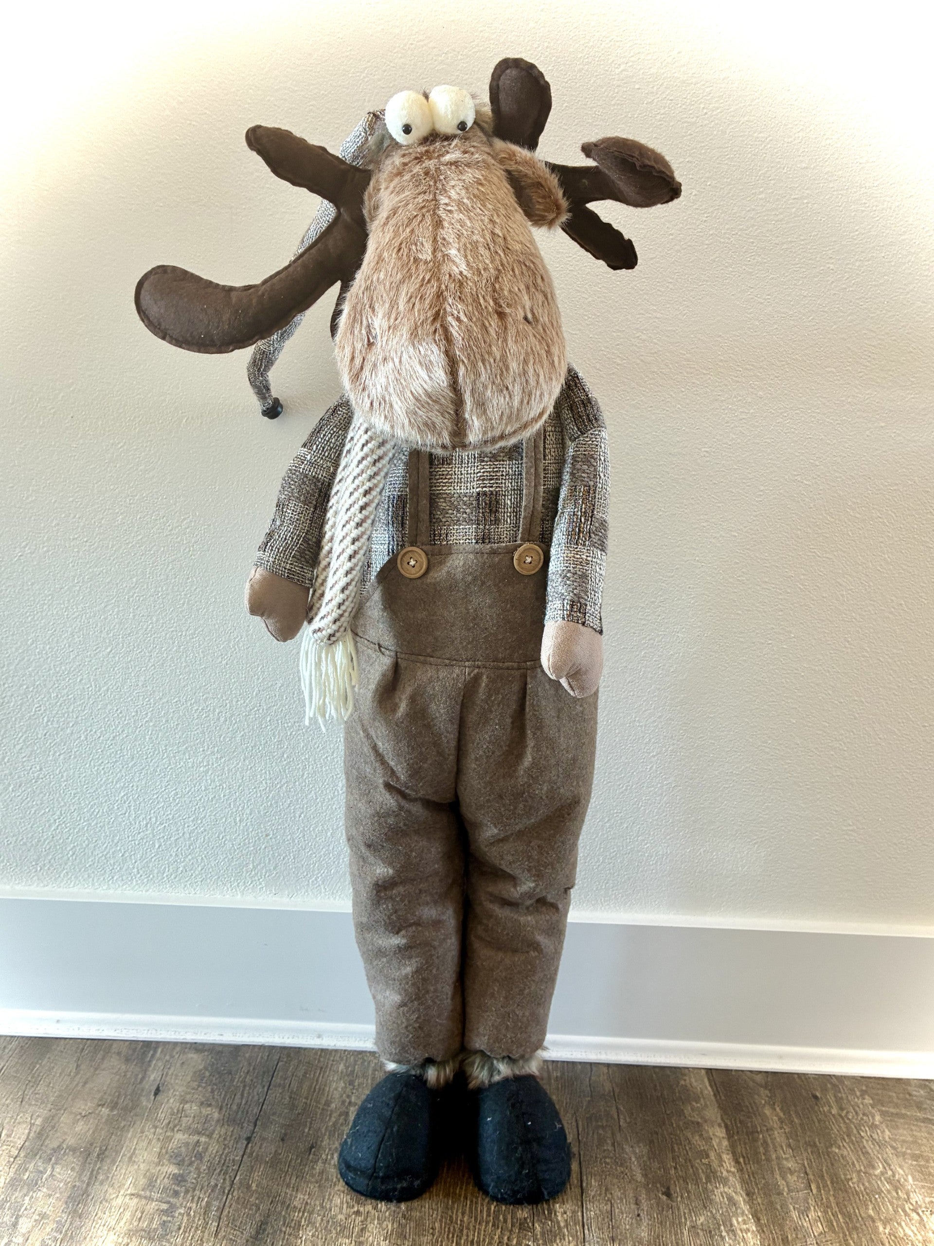 A delightful Moose bundled up for the wintery weather. Able to stand on his own and ready to bring the holiday charm to any home.