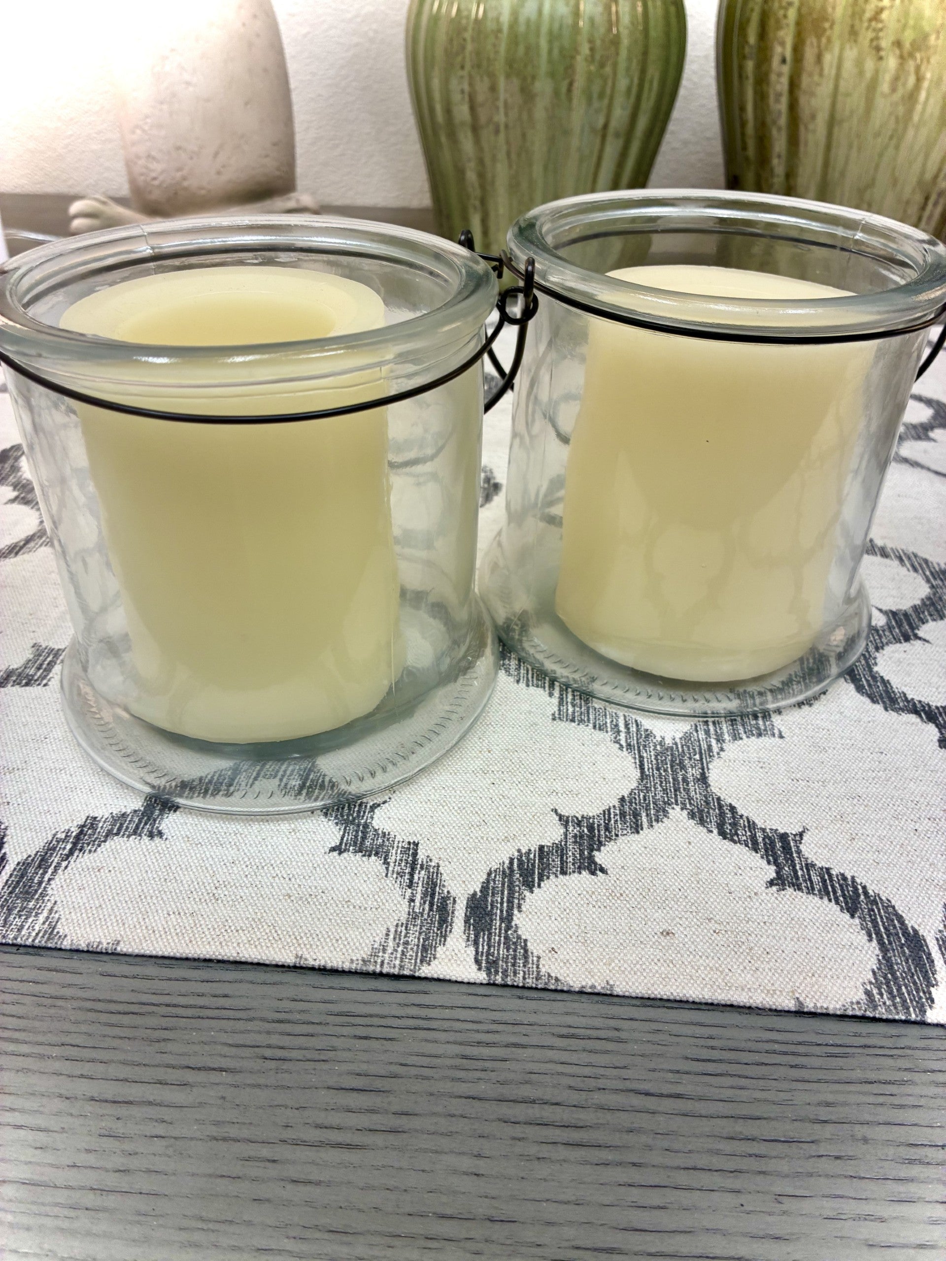 Glass candle holders for indoor or outdoor use. 4 3/4" x 4 1/2"