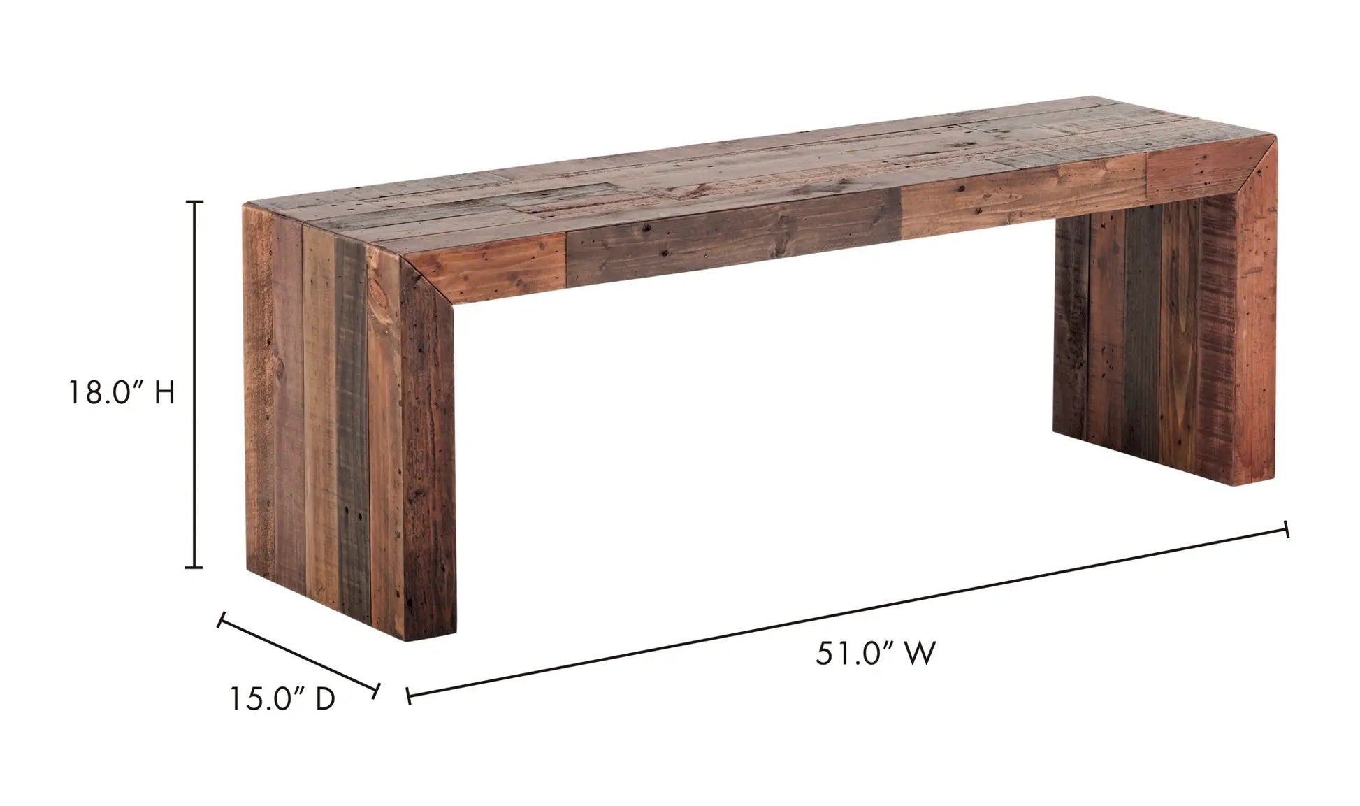 True to its name, the Vintage Bench has history. Made with FSC Certified solid pine, this bench brings rustic style to your dining space and can fit up to three people. Note the unique stain to each piece and the subtle hints of its past life.