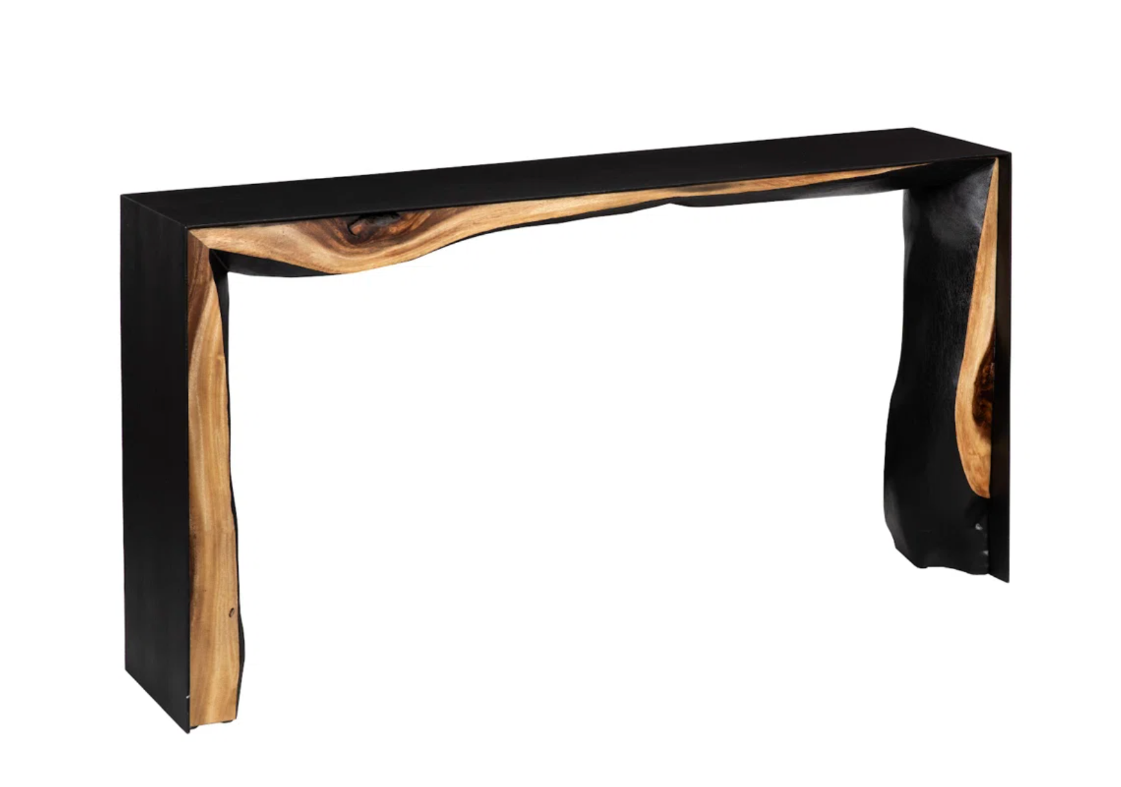 A fusion of traditional craftsmanship and modern style, this framed Waterfall console makes for the perfect statement piece in any modern organic home. Its hand-crafted design and blend of chamcha wood and iron add an air of sophistication and luxury to any space! Custom order, ships to your door for FREE in around two weeks.